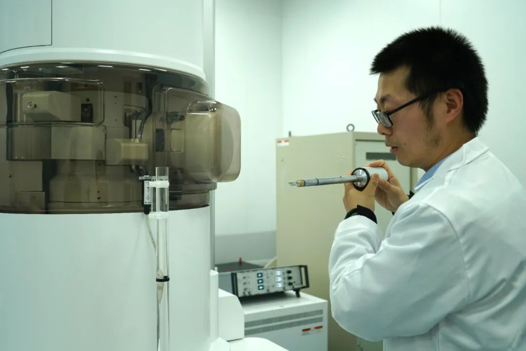 4月2日,在中国科学院金属研究所沈阳材料科学国家研究中心实验室,研究人员计划将加工好的金属材料样品放入扫描电镜中,以观察结构变化。我们的记者邹晓菁拍摄了光明的照片
