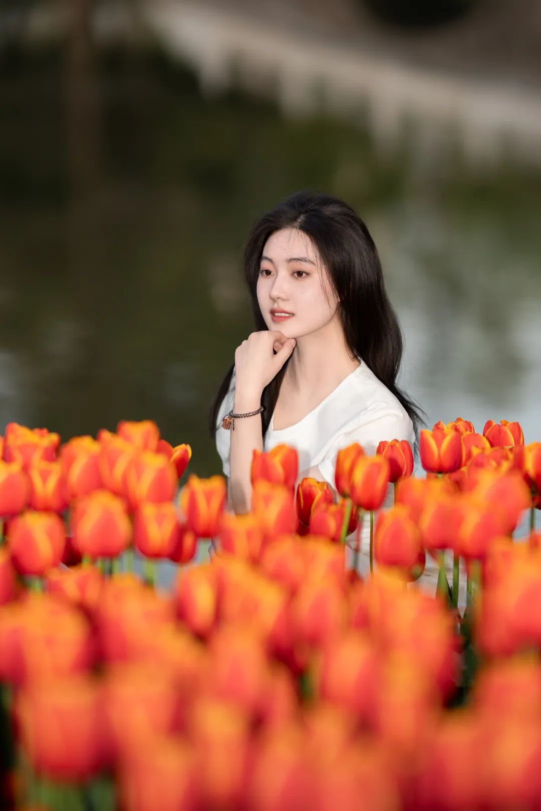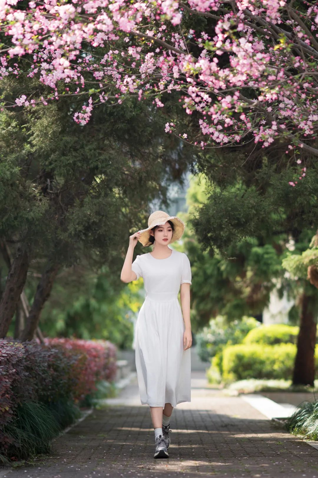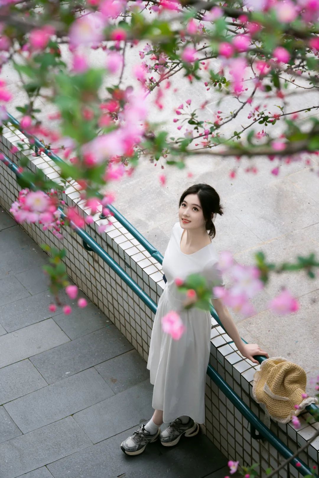 摄影师从侧面拍摄,利用花瓣前景遮挡过道。