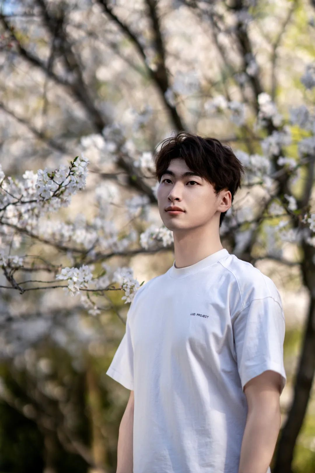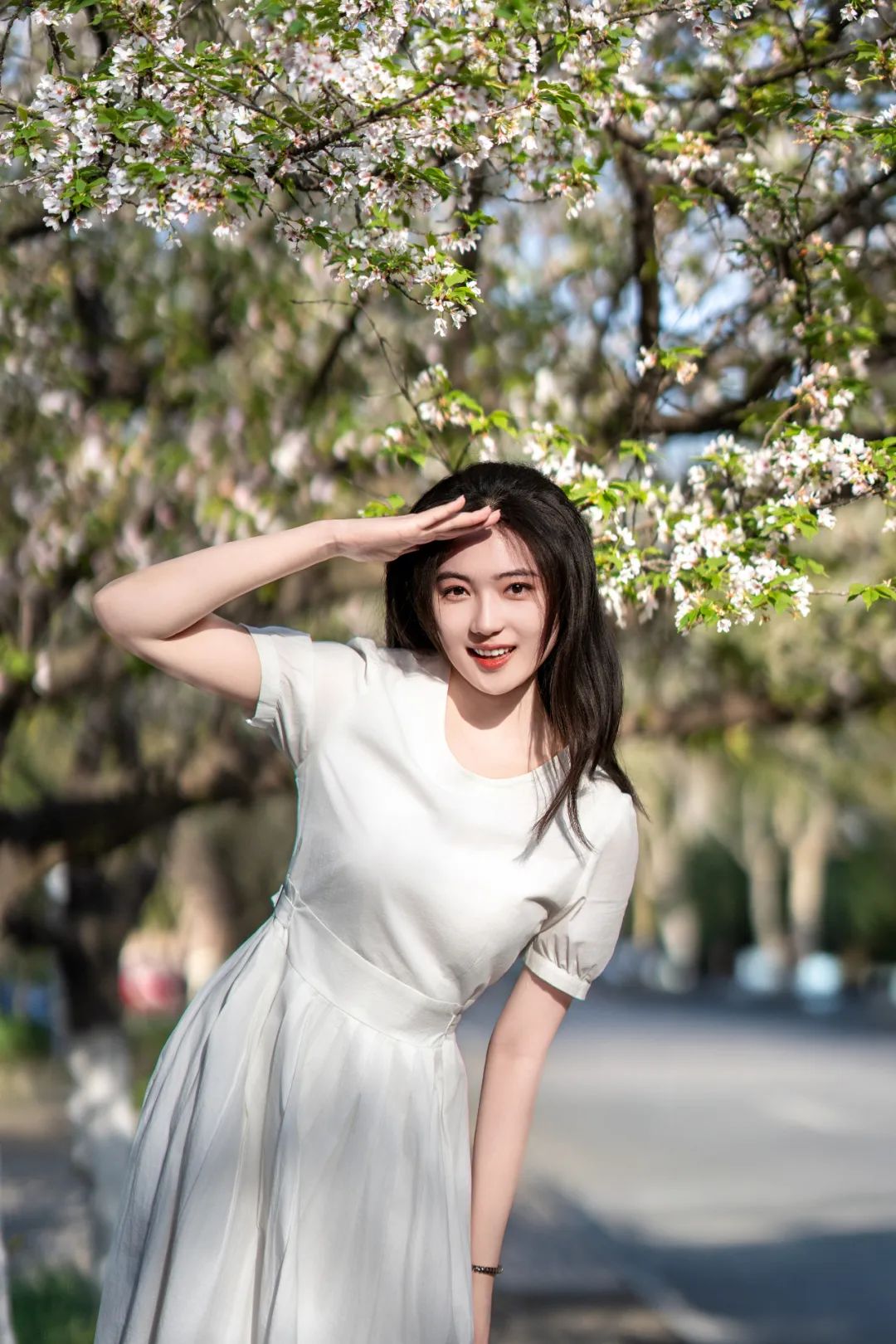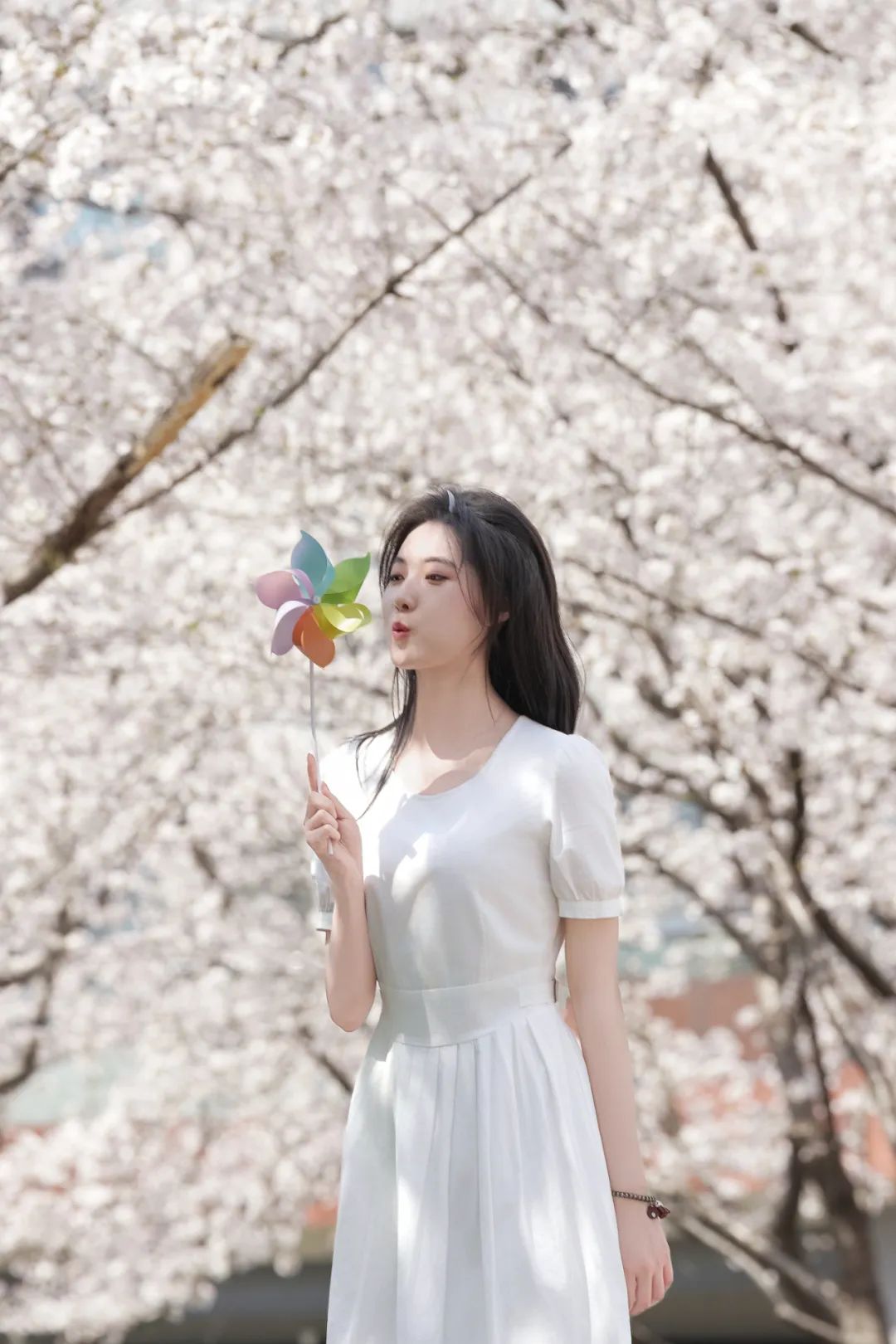 摄影师从侧面拍摄,利用花瓣前景遮挡过道。