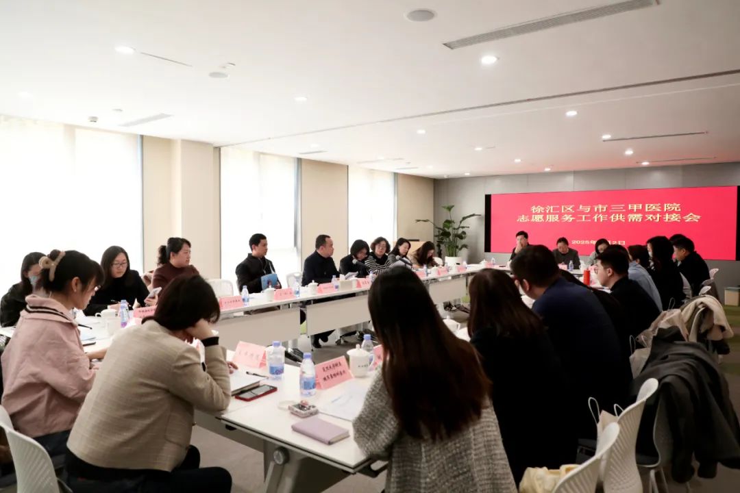 4月2日,徐汇区召开与市三甲医院志愿服务供需对接会,区委社会工作部、区卫生健康委等职能部门、各街镇负责人、徐汇区三甲医院社会工作部负责人齐聚湖南街道8邻里汇,通过现场沟通、供需匹配等方式,搭建医疗资源精准下沉基层平台,为徐汇医疗志愿服务改革创新路径。