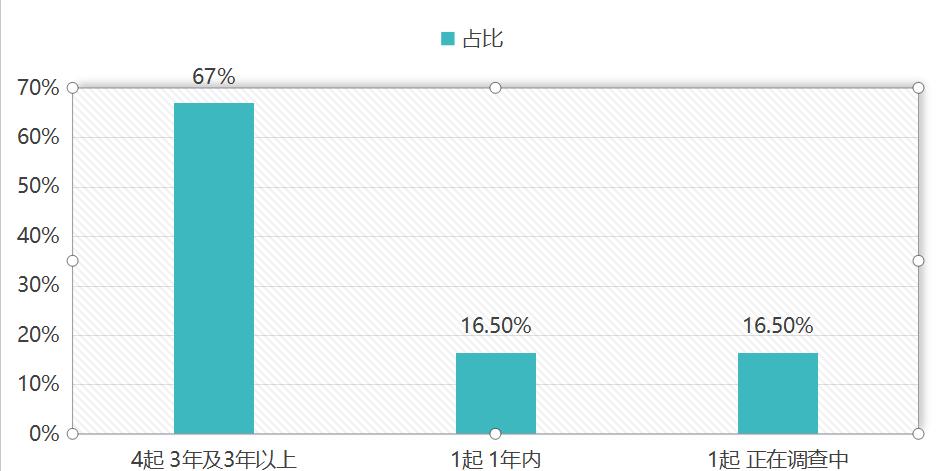 3年及3年以上的购买时间为4起,1年内购买时间为1起,1起正在调查中。