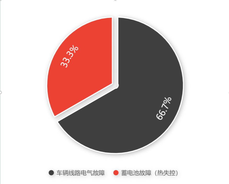 4起车辆线路电气故障,占66.7%。;2起电池故障(热失控),占33.3%。