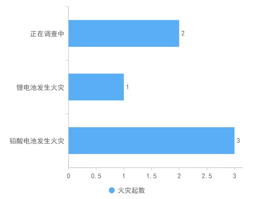 铅酸电池发生火灾3起,锂电池发生火灾1起,2起正在调查中。