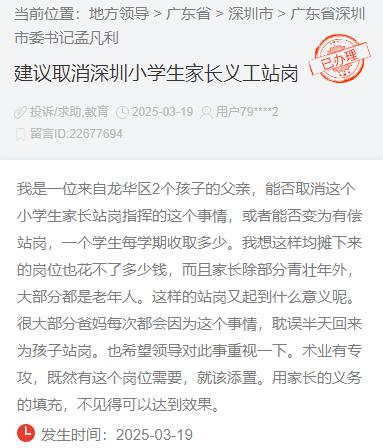 学校周围的安全一直是家长们关注的焦点,很多家长都会做志愿者、志愿者,到学校门口执勤维持交通秩序。最近,一些深圳市民建议撤销父母志愿服务,因为执勤影响了父母的工作安排,并表示是否可以将志愿服务调整到有偿执勤。