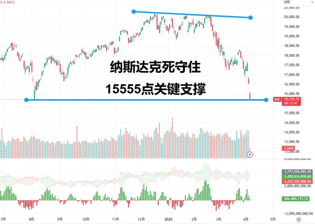 希望周末会有一些好消息。例如,特朗普通过谈判减少关税。从技术角度来看,下周美股市场将进行攻防战。标准普尔500支持5000点,纳指15555点。