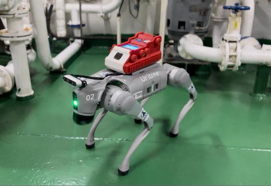船舱内不仅空间小,而且管道等难题也很多,温度往往超过 40 度,让人来定期检查那肯定是吃不消的,但是让机器狗去最合适。