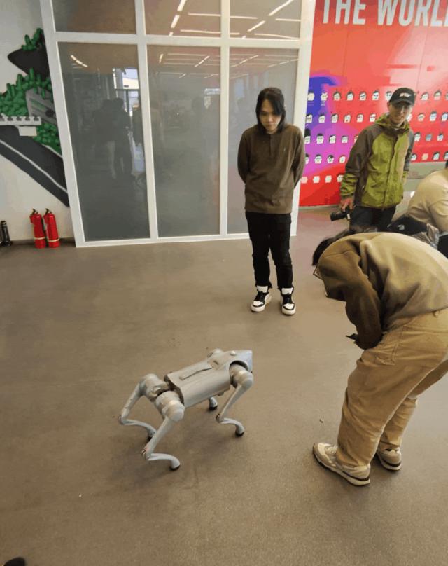 带着这种期待,我们有一半的办公室工作人员走到楼梯口,看着。 Go2 能不能给大家伙整点奶茶?