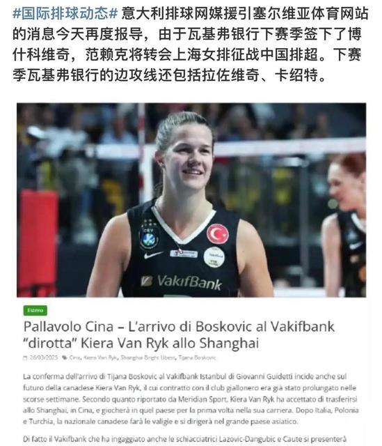 值得一提的是,外媒也爆料称,范赖克离开后,塞尔维亚著名球员博斯科维奇加盟,法国主攻卡绍特和塞尔维亚主攻拉佐维奇,但没有提到马尔科娃的续约!马尔科娃不来了吗?