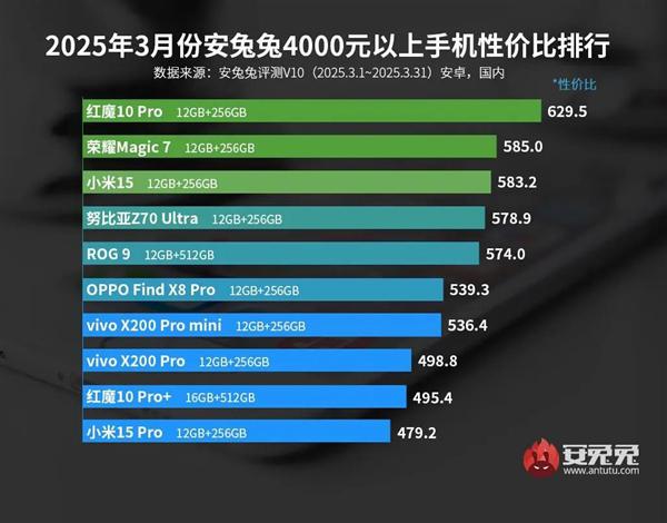 三月份安卓旗舰手机性价比名单:红魔10 Pro登顶第一,小米15第三。