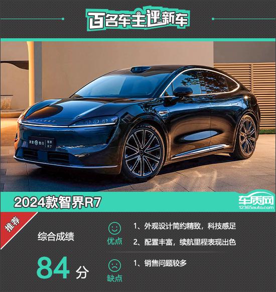 在收集到的 104 根据车主对车主的有效问卷, 2024 款智界 R7 车型基本面,驾驶体验,维修费用,质量可靠,售前 / 在这次调查中,售后服务方面给出的真实评价 2024 款智界 R7 综合得分分为 84 分数,达到推荐车质网的标准。