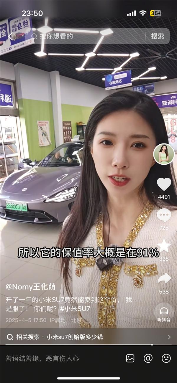 全国首台霞光紫女车主销售小米SU7创始版:保值率惊人