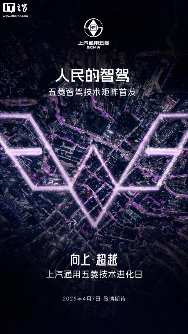 IT 世家 4 月 6 日新闻,上汽通用五菱技术进化日将在 4 月 7 每日举行,从官方发布的预告图来看,本次技术进化日五菱将发布智驾、电池、电机三大核心技术。