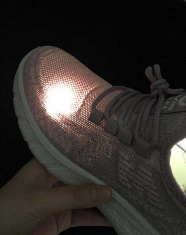 你看这 5D 立体精密透气飞织网布,N 多个密集的编织微孔,打灯都可以通过,,透气效果能不好吗?