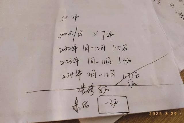 3 年度断断续续收益 5 一万元左右,但去掉代理费、装修费,还倒贴。 3 万多