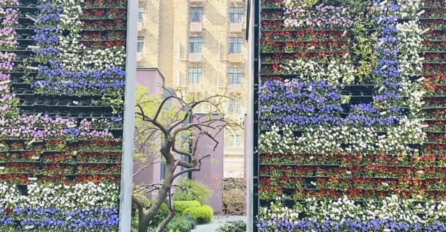 沿着石门一路走到南京西路口,看见了同福小而美丽的花园。外界竖直绿植巧妙的设计,将内外空间分开,进入狭窄的过道内部,感觉就像一个小型庭院,更适合漫步欣赏。