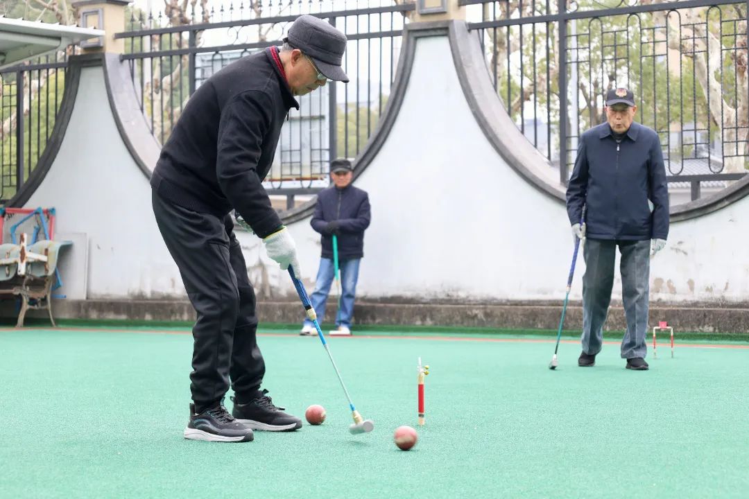"三号球穿越二门得分!”华新公园门球场上传来热烈的欢呼声,伴随着清脆的发球声。说起打门球的好处,华新门球队队员张阿姨深受感动。她说:“打门球对体能要求不高。除了扎实的基本功,我们还是要动脑,按照比赛过程顺势而为。对于老年朋友来说,门球是填补退休生活的理想运动。大家一起训练,一起聊天,身体、头脑、心情都变得更好了。”