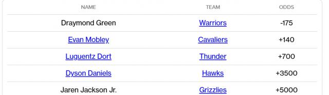 随着赛季的结束,各大奖项逐渐显露出来,其中最引人注目的最佳防守球员突然变成了一号种子。各大庄家发布的赔率榜,追梦格林超越莫布里、多尔特、丹尼尔斯、JJJ 等待球员跃居赔率第一,甚至很多球迷都觉得追梦已经稳定。