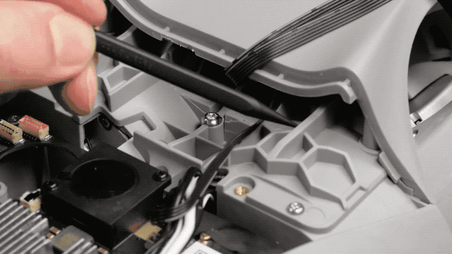 随后,移除隐藏在腿部下方的一颗额外螺丝,断开连接线缆,以释放并拆下整个 Lidar 模块。