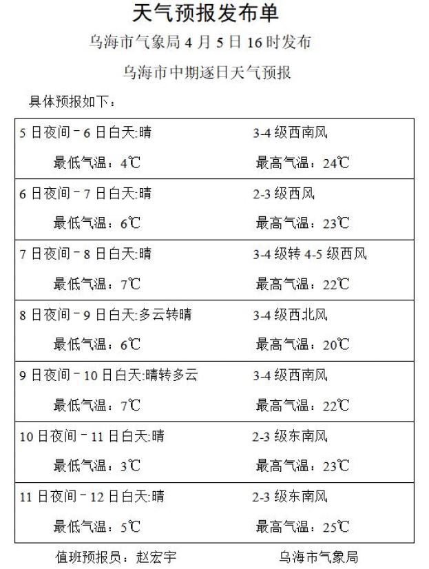 题目:“最高25℃!乌海节后天气预报!”