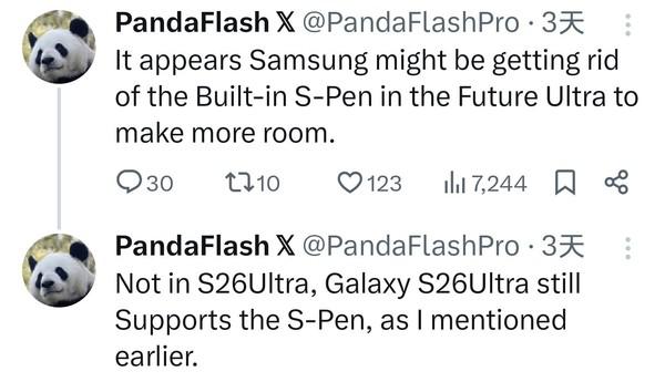 曝光三星正在考虑移除S 为了提高电池Pen 但S26 仍然保留着Ultra