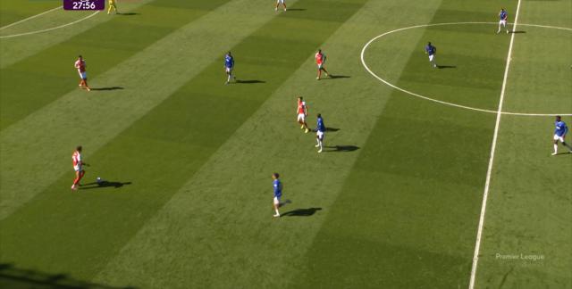 由于在后场组织阶段,你可以清楚地看到今天的阿森纳。 3223 站位,本 - 怀特今天的职责显然更多地出现在后场: