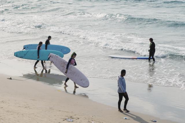 日月湾有30家冲浪俱乐部,冲浪课比我预期的要便宜一些。