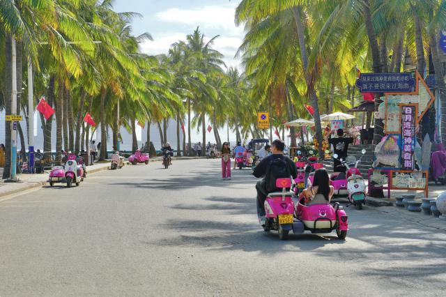 租一辆电动汽车在日月湾兜风,一面海,一面椰林的椰林大路真是无与伦比。