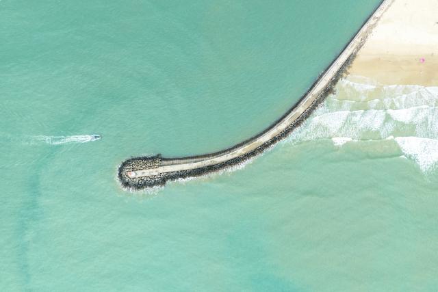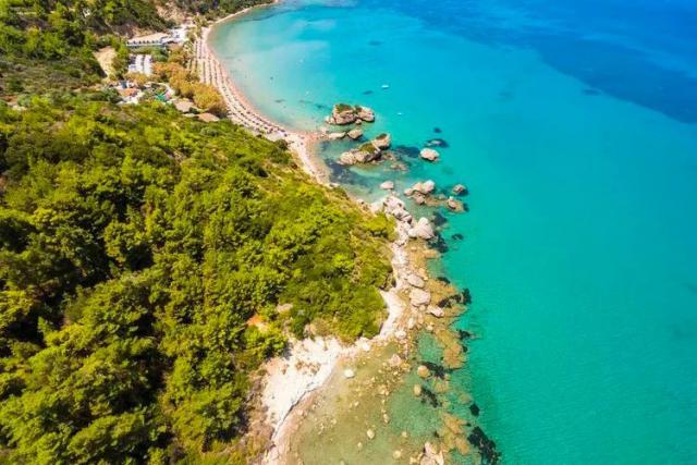 岛的尽头和陆地是相连的,所以是半岛的形式。内海的大海是绿色的,外海的大海是蓝色的。从第三个角度来看,也是一个颜色鲜艳的“鸳鸯锅”。