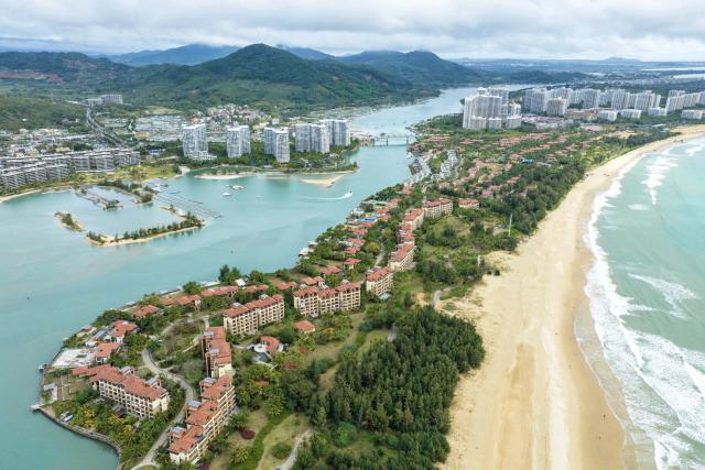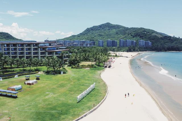 面向大海的神州半岛有五个港湾,其中一个是最成熟的,酒店也集中在这里。二湾是一个高尔夫球场,三、四、五湾没有太多的研发,那就是野生沙滩。
