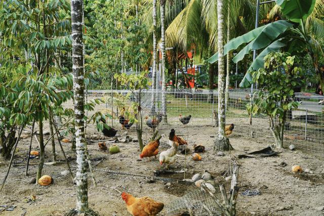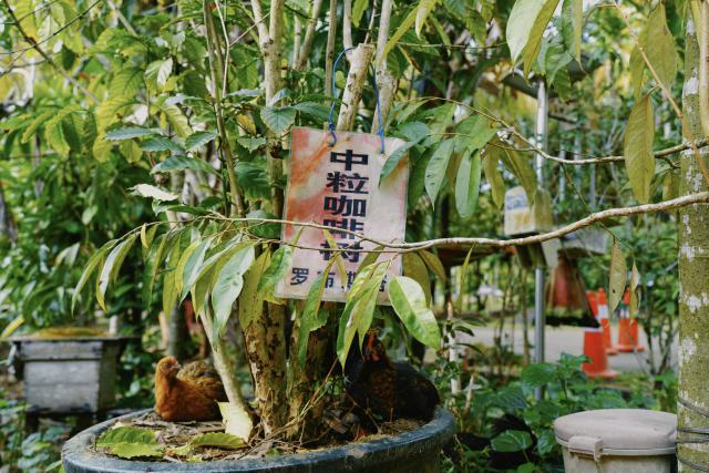 咖啡种植以展示为主,不成规模,大家看一看新鲜度。但别的不说,这里散养的咖啡鸡一看就好吃!