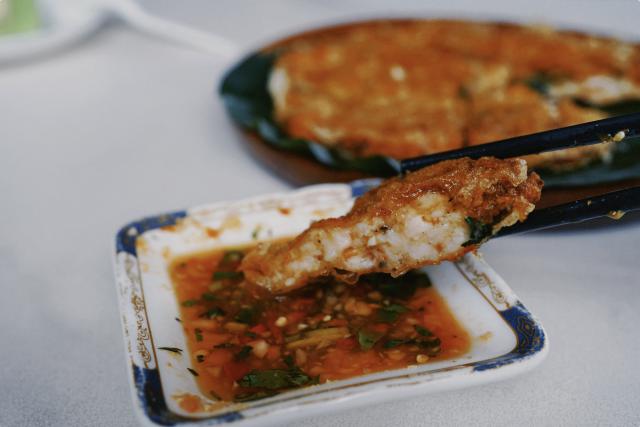 印度虾饼很好吃,虾肉筋道,面粉壳薄而脆,沾上标志性甜辣酱十分开胃。