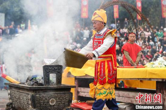 △图为祭拜者正在举行祈福仪式。中新社记者 瞿宏伦 摄