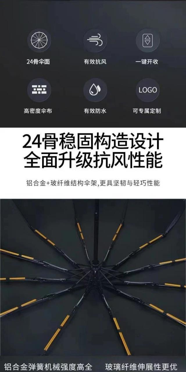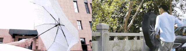 一般伞稍微大一点的时候会吹折,吹反。相反,这种全自动伞