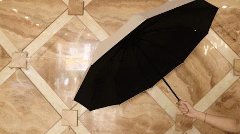 不必一鼓作气与雨水抗争,被门卡住打湿身体。一秒钟收伞,完美避雨。
