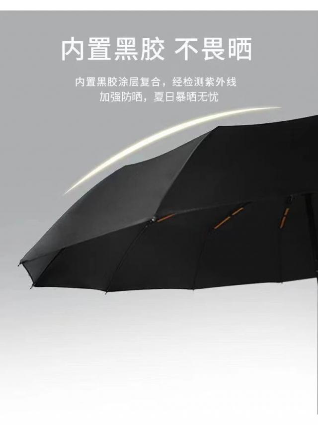 1、晴雨双用,三折加厚加厚。 24 骨头双龙骨,不怕暴风雨。防晒指数 50 ,爆晒 / 下雨时要小心
