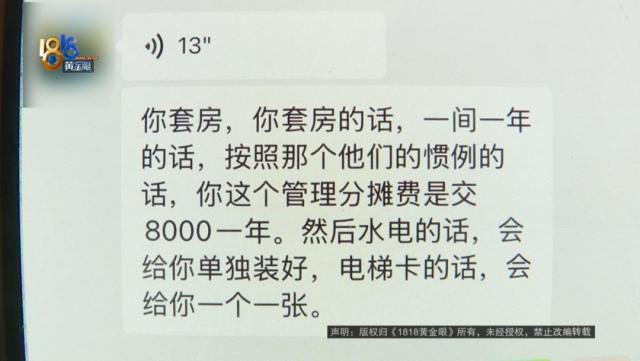 刘女士说后来联系了酒店的一位许主管,在微信聊天中对方说:“管理分摊费是交费的。 8000 一年后,如果水电独立安装电梯卡,会给你一张“并表示”"房东不是永利公司只是邻居关系"。