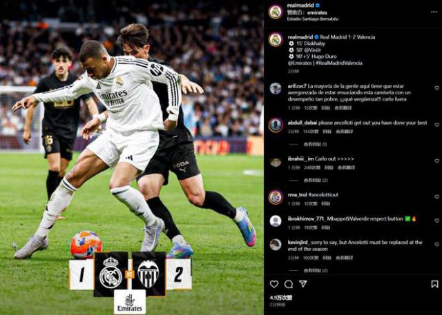4 月 6 一天早上,皇马遭遇了一场冷战。安切洛蒂的球队在伯纳乌。 1-2 输给瓦伦西亚,已经落后巴萨。 4 得分,夺冠前景十分黯淡。比赛结束后,许多球迷对安切洛蒂感到愤怒。