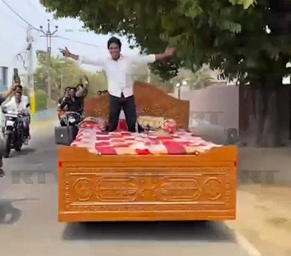 网民们开玩笑说:“当班加罗尔堵车时,我需要这辆床车来随时补眠。”、“只有印度才能看到这样的事情”。