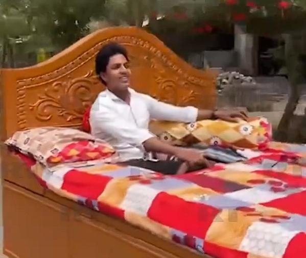 随时补觉!一名印度男子驾驶“床改车”上路行驶,引人围观
