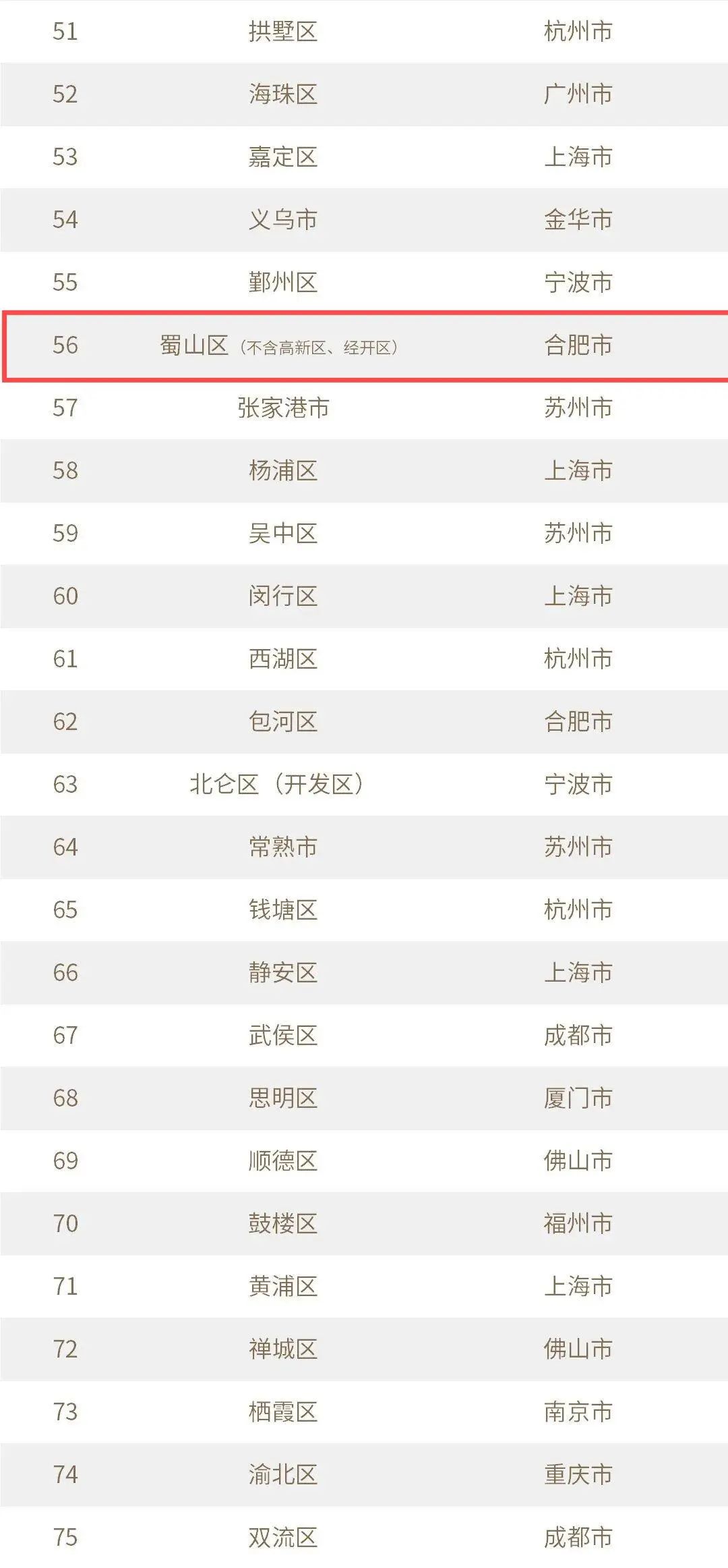 蜀山区在合肥市上榜