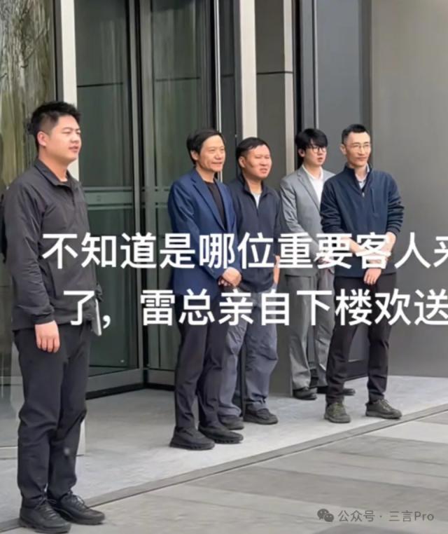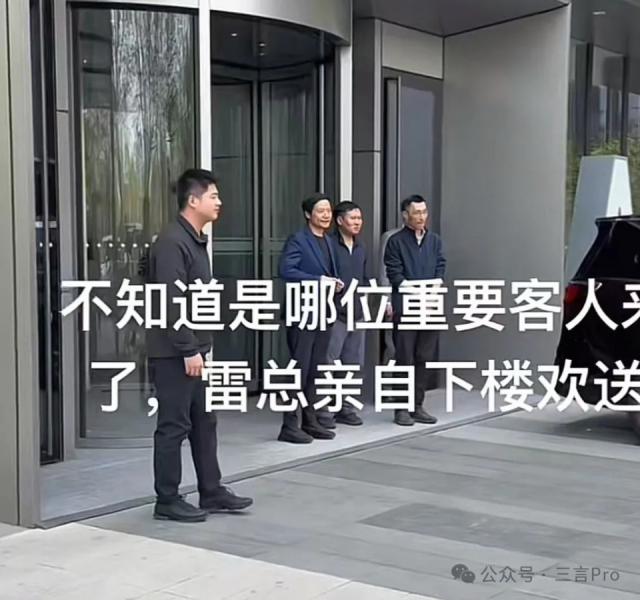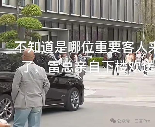 不知道是哪位重要客人来访,雷总亲自下楼送客。看见雷总双手握拳,略显拘谨,面带微笑欢送客人乘车离开。