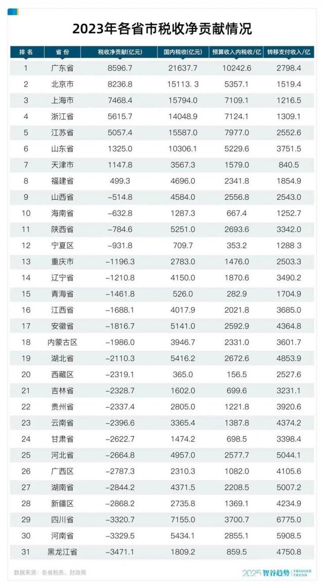 三、东部 8 省“养”全国,谁是最大净贡献省?