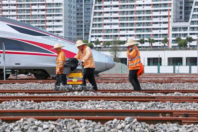 ▲宁波工务段工作人员对宁波动车使用线路进行了检查。 / 摄