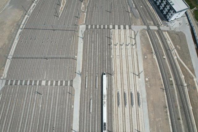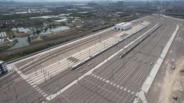 ▲第一列火车驶入宁波动车使用中心。 / 摄
