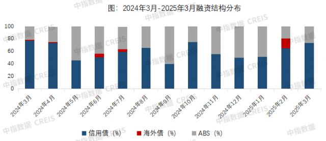 2025年中指研究院监控 年 3 每月房地产企业债券融资总额为 454.3 1亿元。就融资结构而言,房地产信用债融资 332.1 亿元,占比 73.1%;ABS 融资 122.2 亿元,占比 26.9%的债券融资平均利率 同比下降3.08% 0.03 %,环比下降 0.55 %。