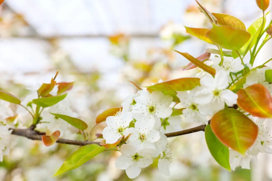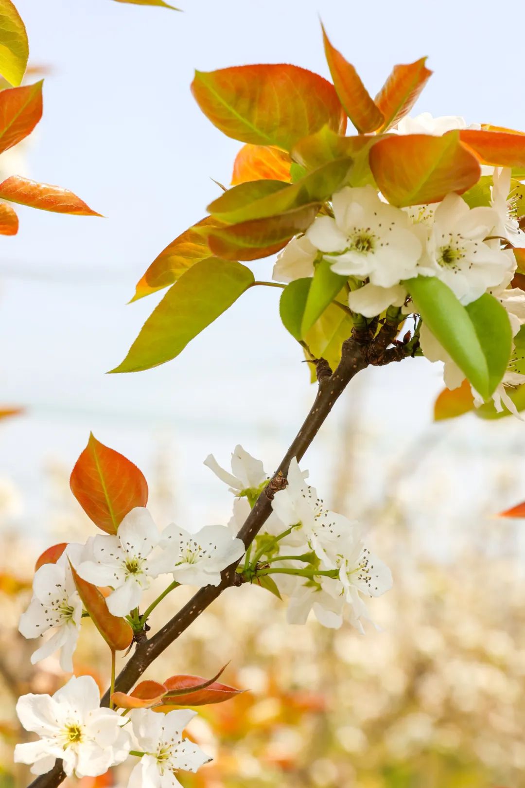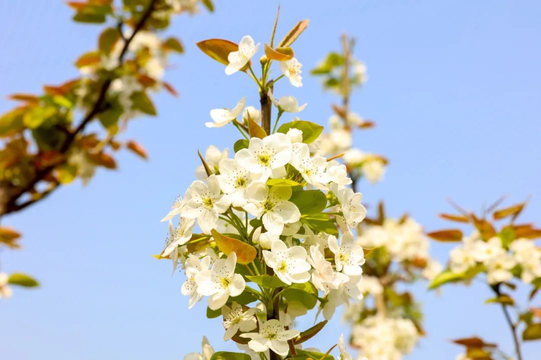 仔细看,每一朵梨花都像一块精心雕刻的玉。花瓣像雪一样白,要么自由伸展,要么半掩羞涩。连花蕾都充满活力,等待微风轻轻启动。