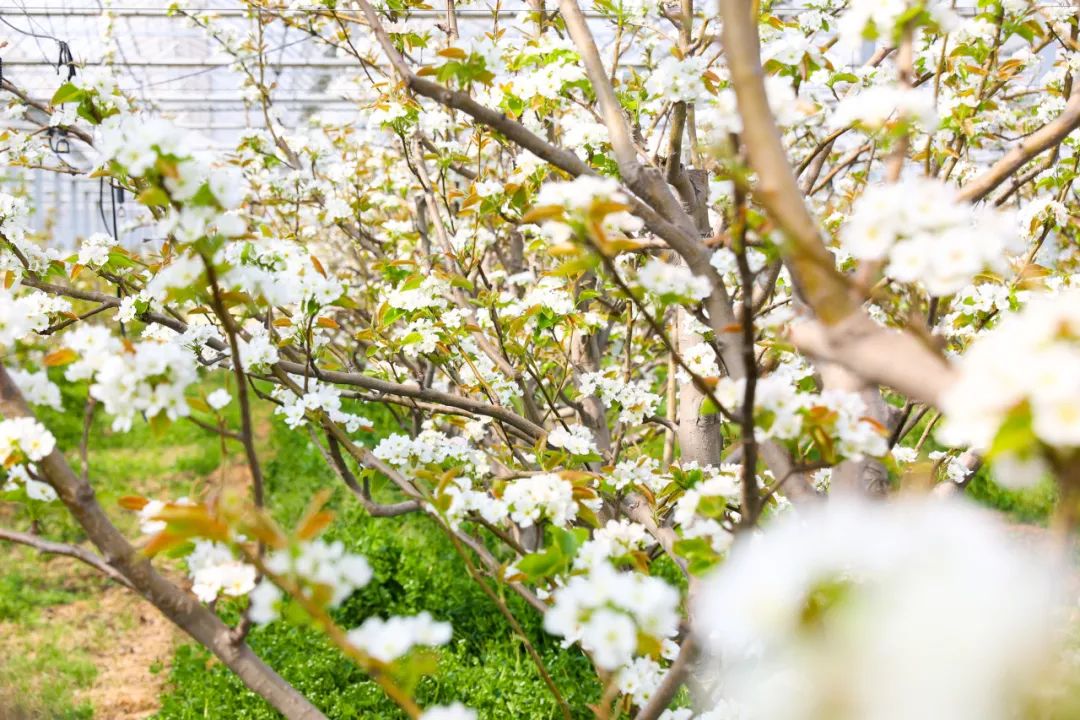 这里不仅有清新、优雅、美丽的梨花,而且环境安静,生态极佳。据负责人介绍,上海康然农业专业合作社梨树种植面积约80亩,总种植量约8000棵,室内种植量约1800棵,室外种植量约6200棵。7月初果实成熟,产量约3000亩。