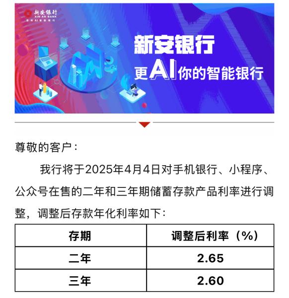 ● 通知新安银行调整利率。调整后,3年限定期存款利率低于2年限定期存款利率,构成利率倒挂。