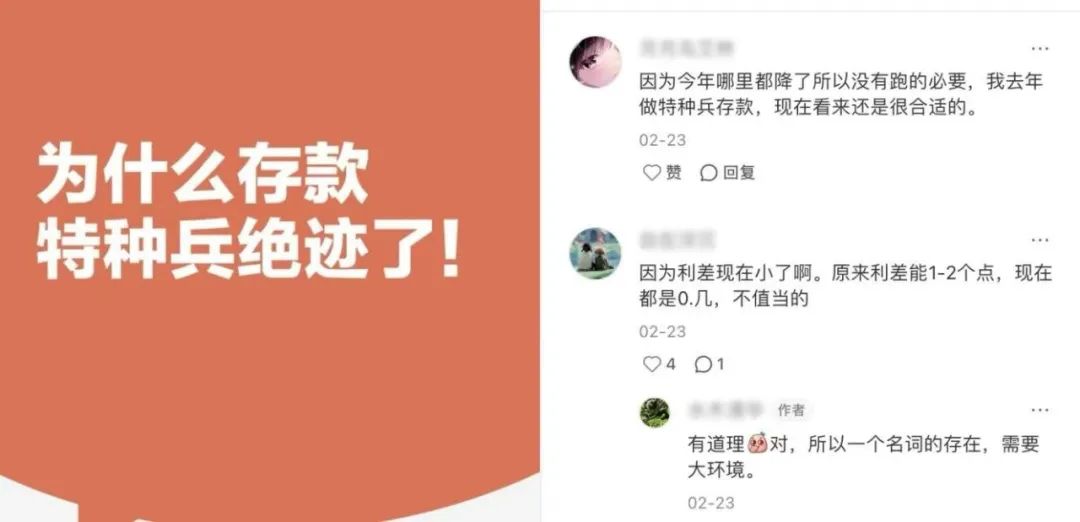 近年来,比杨挺更热衷于追求高息存款的人不在少数。但今年以来,曾经为高利率奔波的人似乎一夜之间消失了。在小红书中,一位曾经专程从河北省到成都省钱的网友问:“为什么存款特种部队灭绝了?”帖子引起了很多同感:利率下降的地方没必要跑。