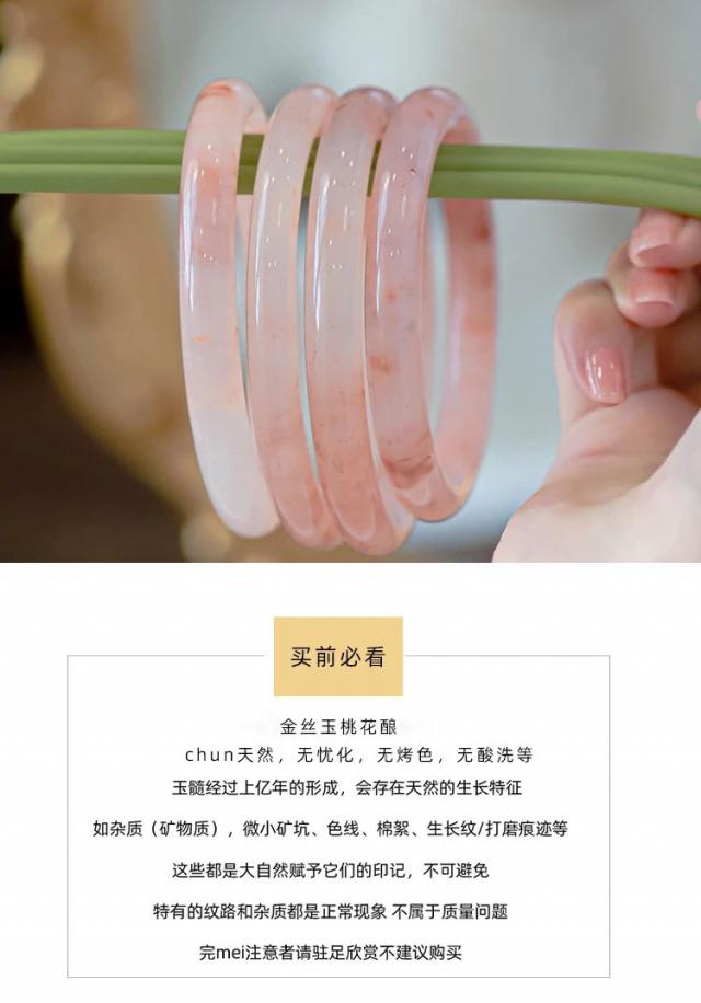 桃酿手镯是天然玉,每一种玉的颜色都不一样,随机发,谨慎拍摄。